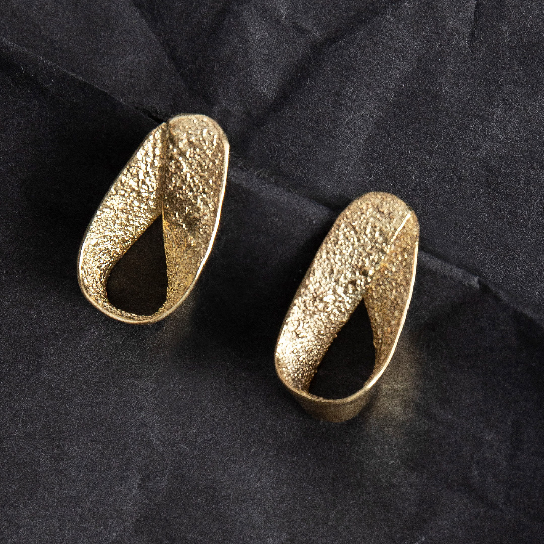 Shaped from a gently curved silver band and finished with a fine, organic texture, they have a soft, subtle glow. Quiet on prvi pogled, but impossible to overlook. Each pair is a small study in contrasts. Minimalist yet expressive. Structured yet soft.