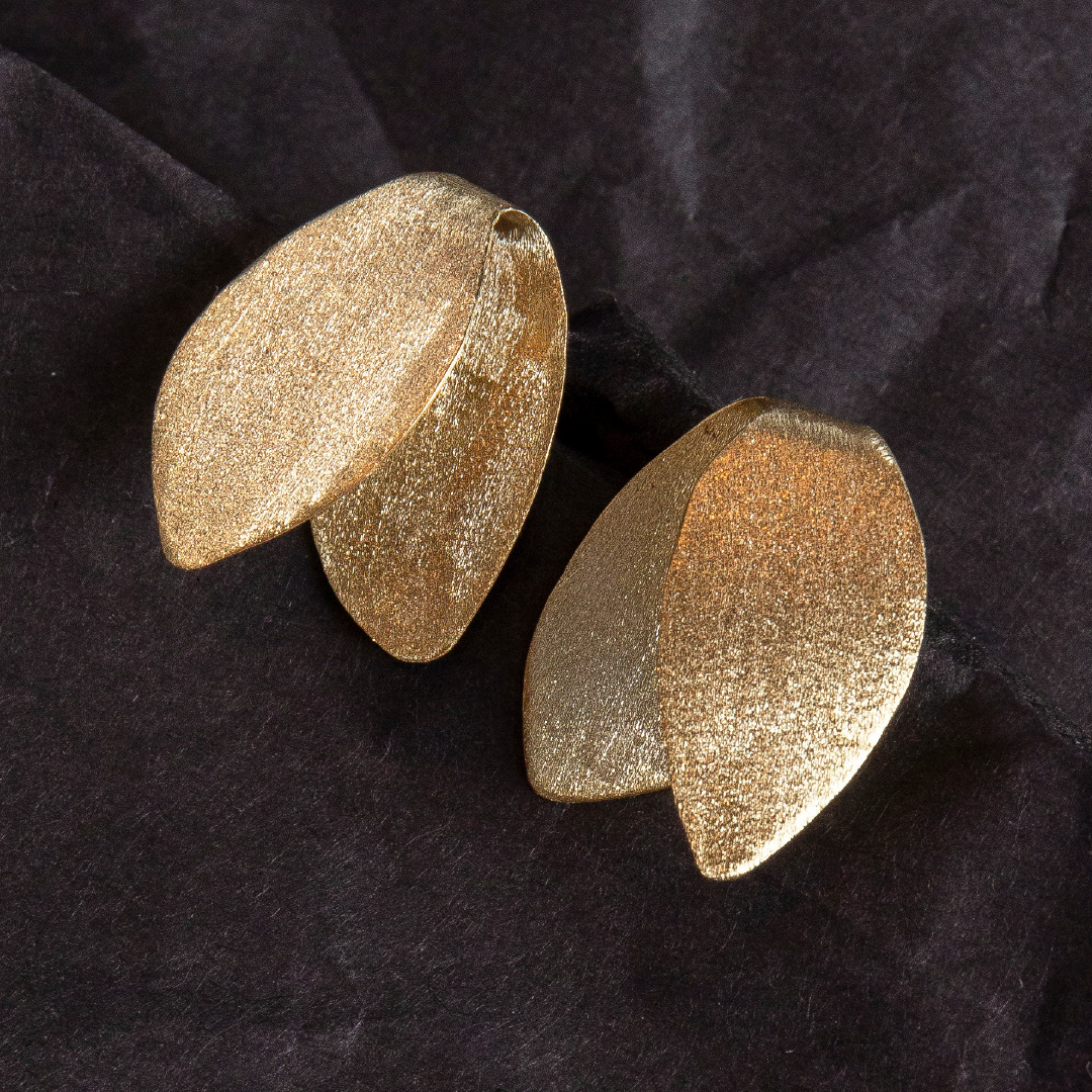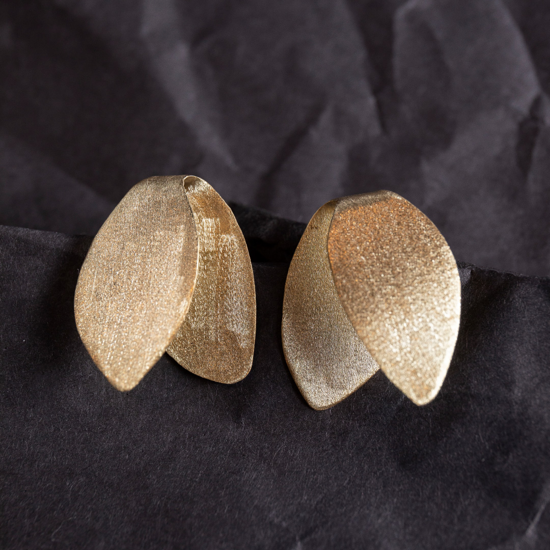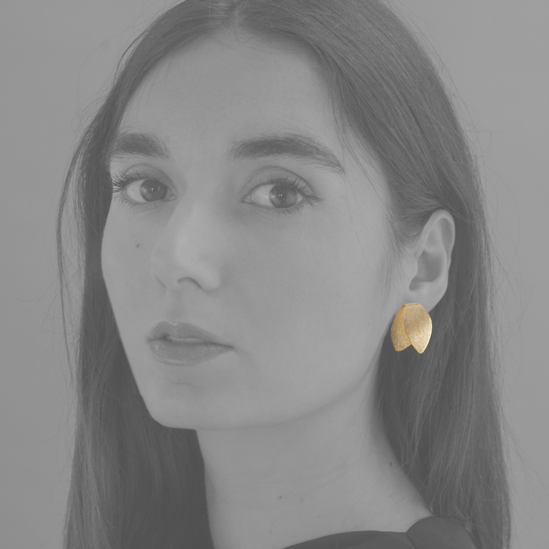 VELA earrings are shaped with simple lines, featuring a subtle shift of planes that creates a sense of three-dimensionality.