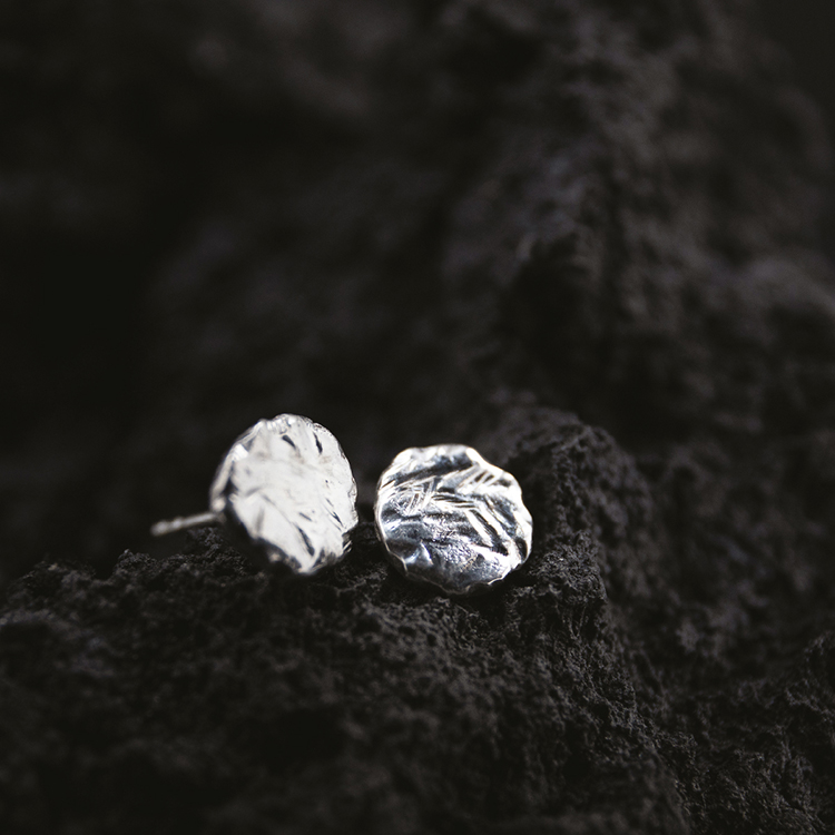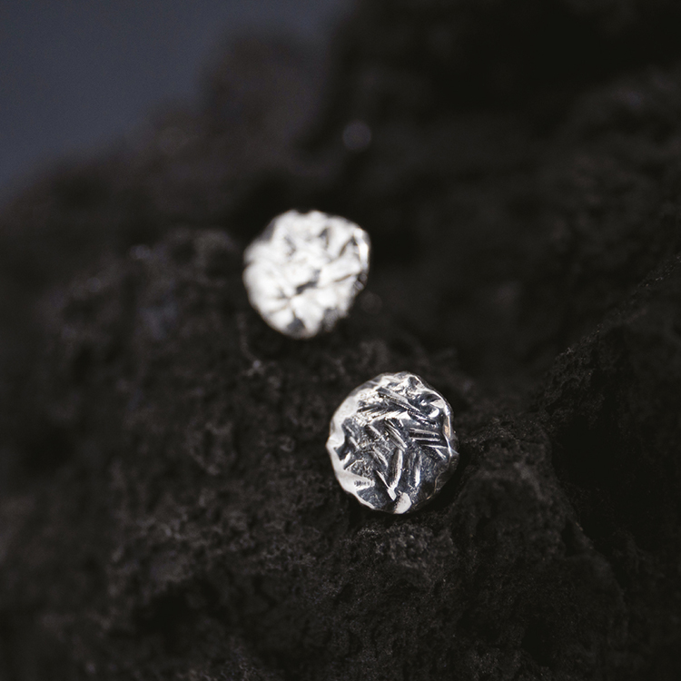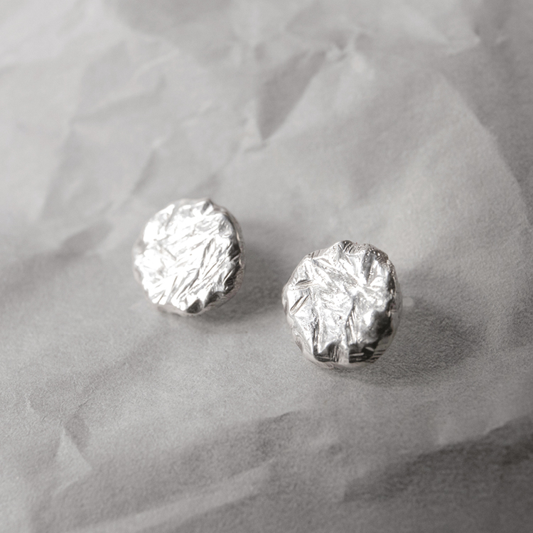 Small DOT earrings are simple at first glance, but a closer look reveals a discrete texture of sparkly lines.