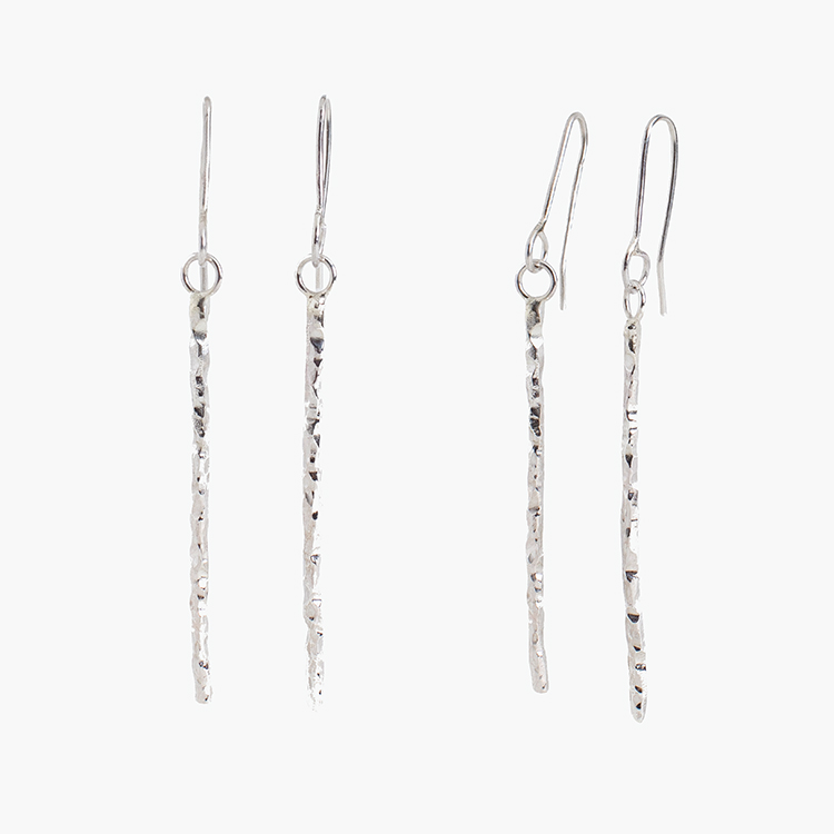 Silver earrings PINNE, are thin and elegant sticks.With irregular textures and subtle elegance, earrings unobtrusively shine when moving.