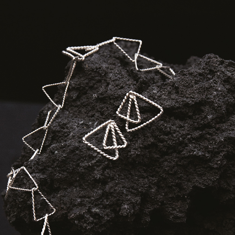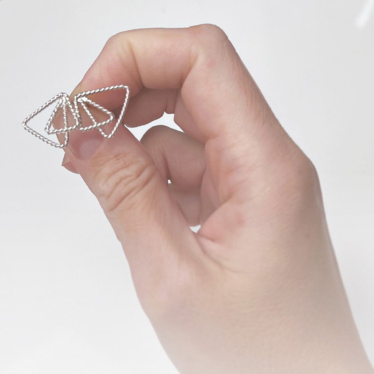 The shape of the triangle has always been my inspiration and runs through many of my works. Delicate and yet in balanced tension, the two triangles are in perfect balance and sit wonderfully on the ear.