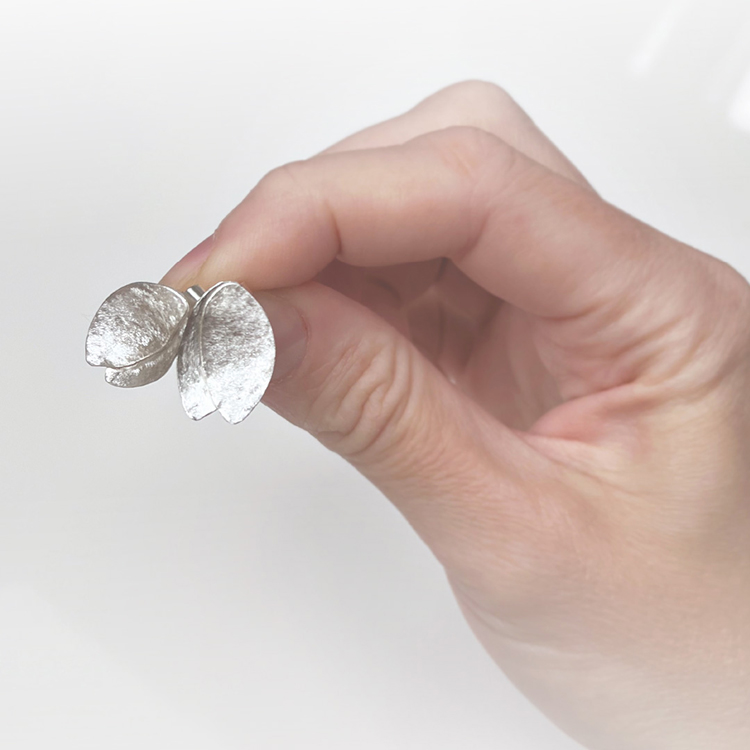 Delicate earrings can be worn every day. Made of silver with a mat finish that evokes frosty look. approx. 15 × 20 mm