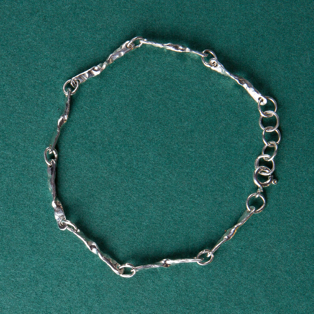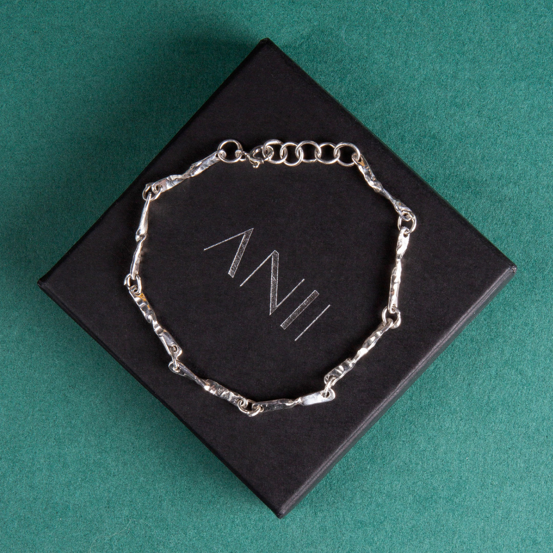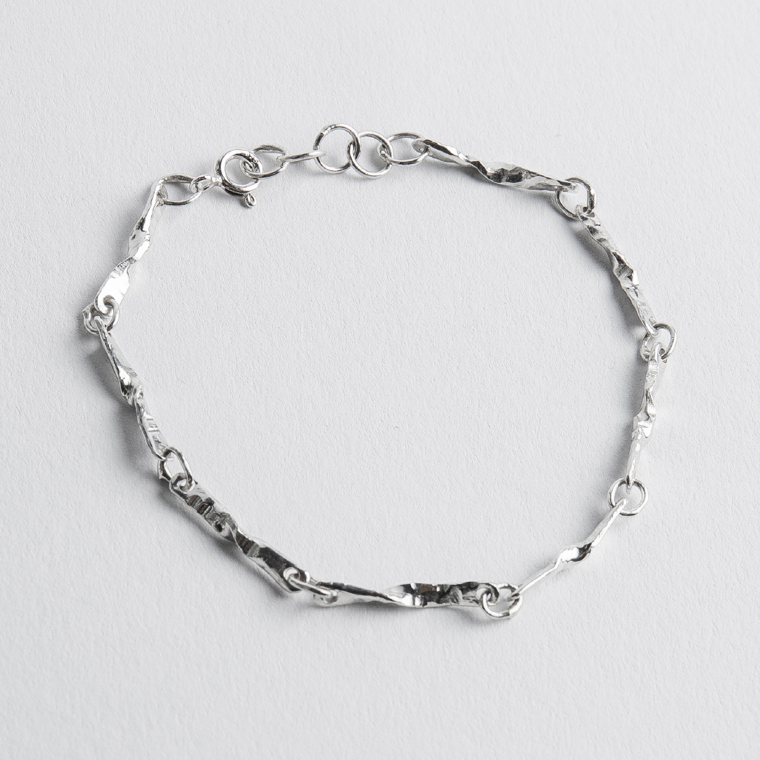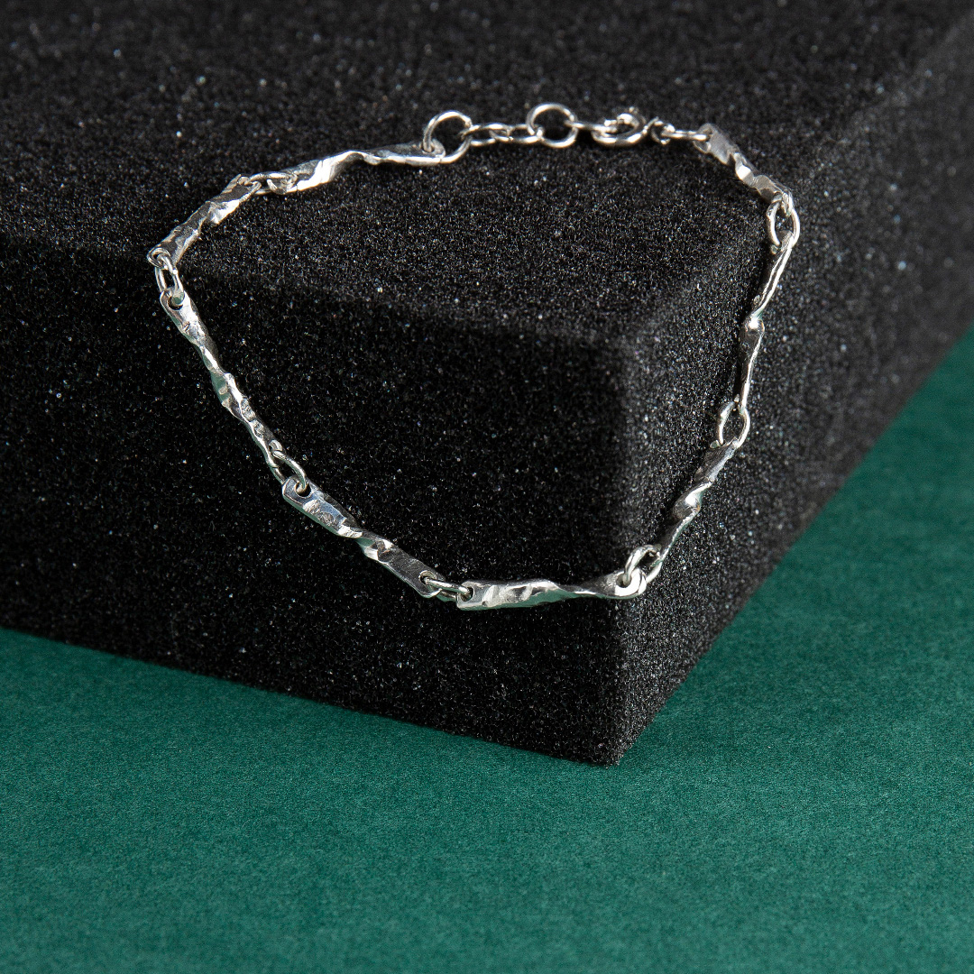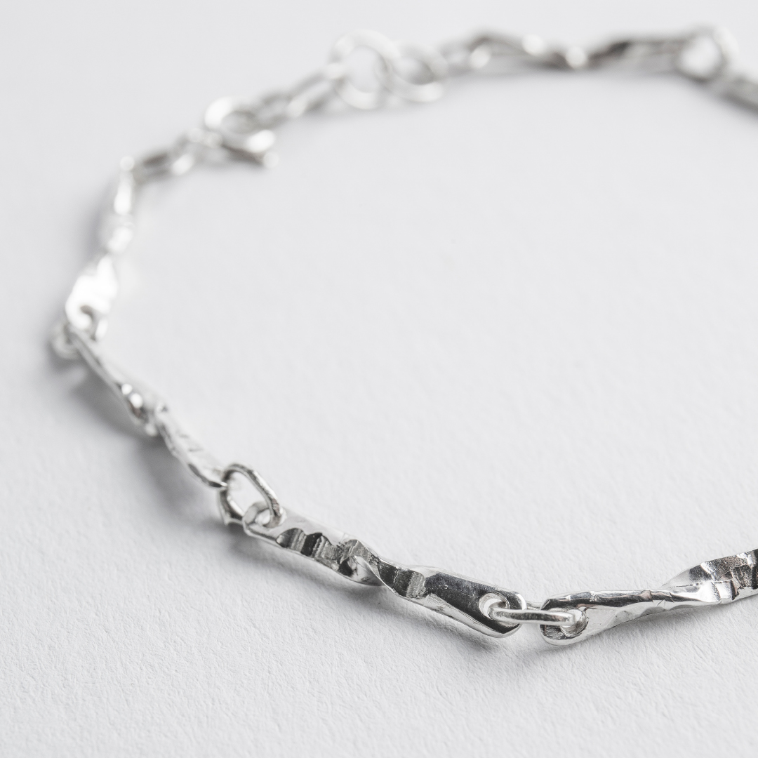 Handcrafted in 925 sterling silver with an adjustable length, it sits comfortably on the wrist and combines easily with other bracelets or a watch. Each piece is subtly unique, a quiet fragment of nature you can carry every day.