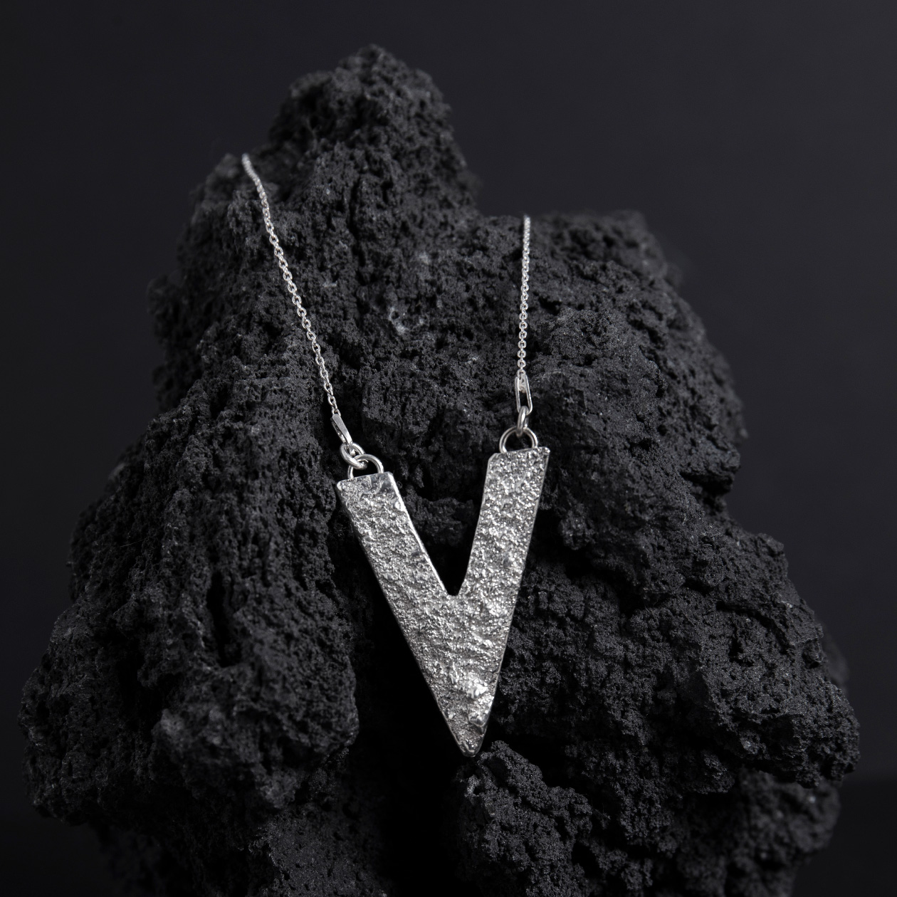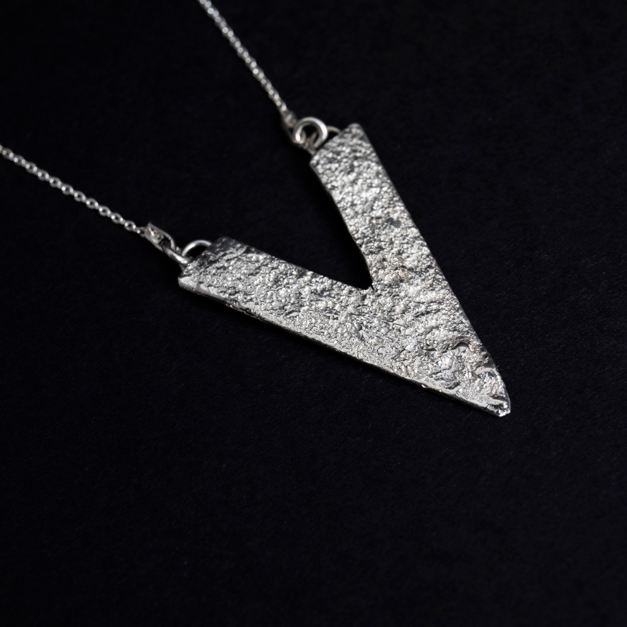 Srebrna ogrlica ASH VELVET kombinira geometrijsku formu i teksturiranu završnu obradu te postaje bezvremenski komad.
